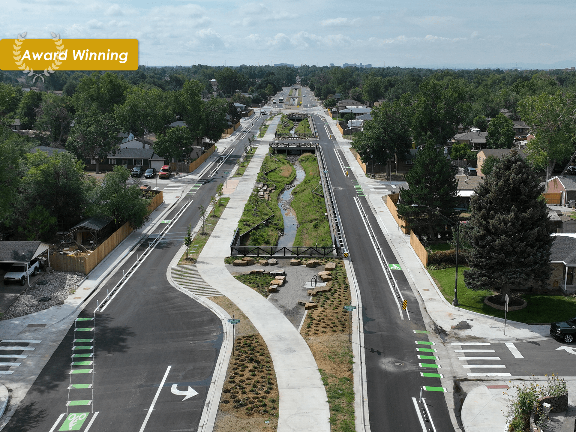 In addition to 60,000 vehicles, hundreds of residents, cyclists, and Colorado School of Mines students navigate the US 6 and 19th Street intersection in Golden each day traveling between neighborhoods and downtown, up Lookout Mountain, and between classes and student housing. The US 6 and 19th Street interchange (Linking Lookout) replaced the existing signalized intersection with a modified diamond interchange featuring a city park and multi-use trails built on the first landscaped bridge and innovative highway lid in Colorado.Golden, ColoradoUvalda Tributary to Irondale Drainage