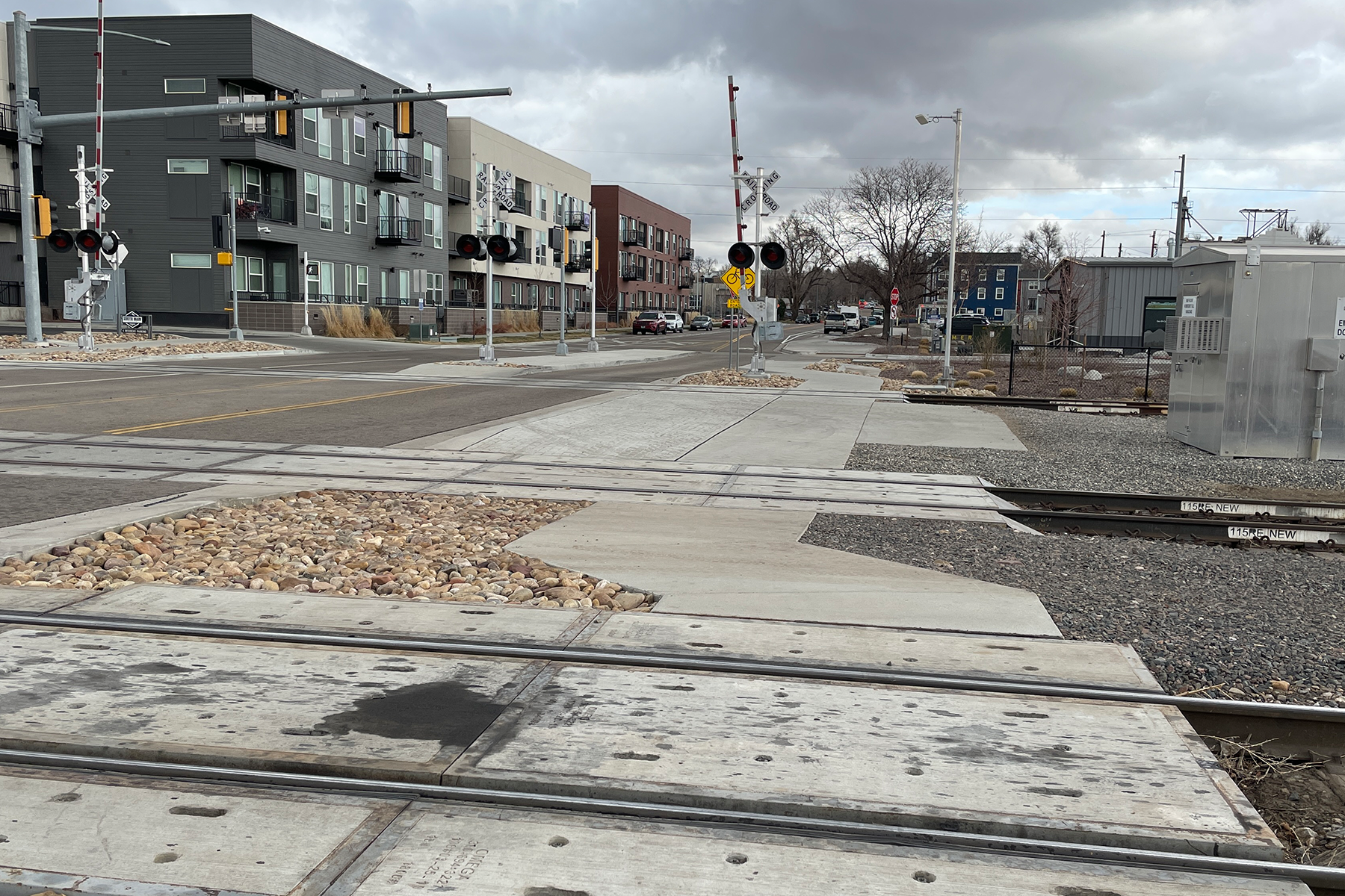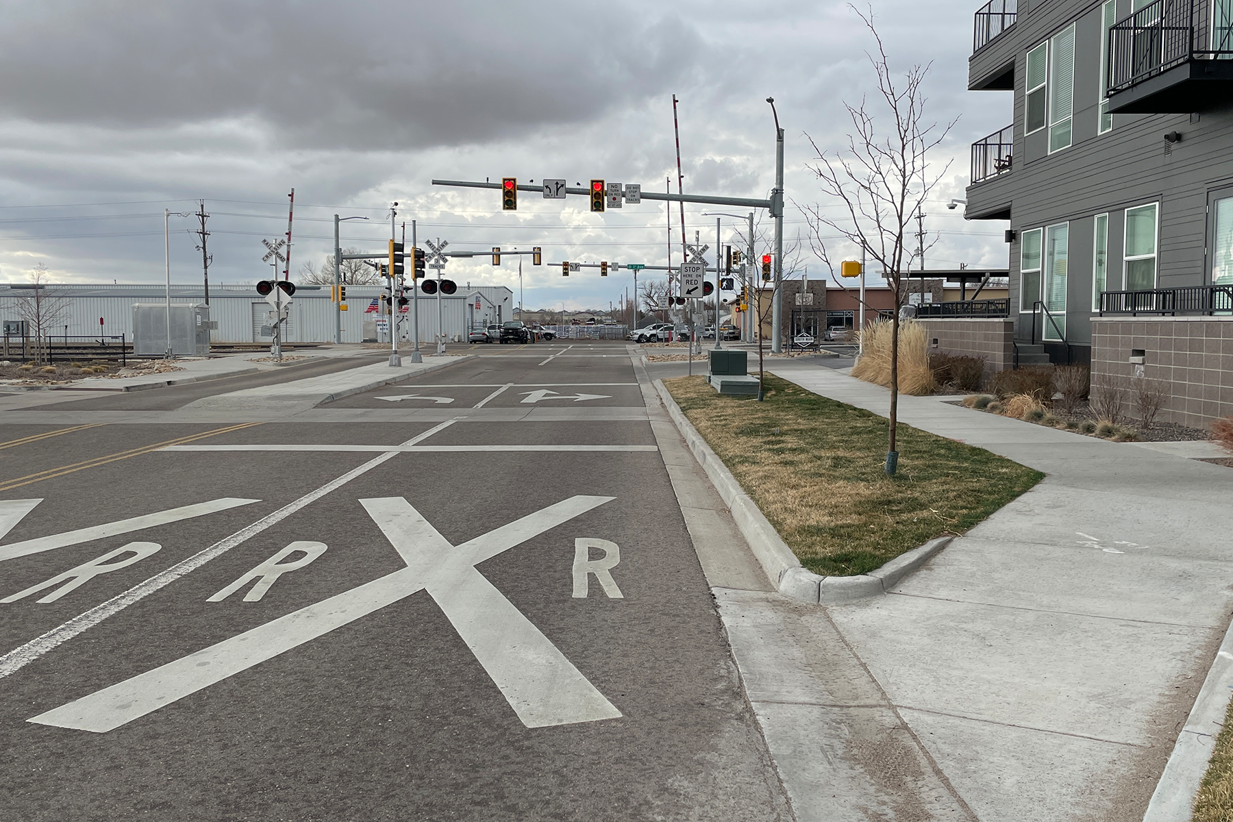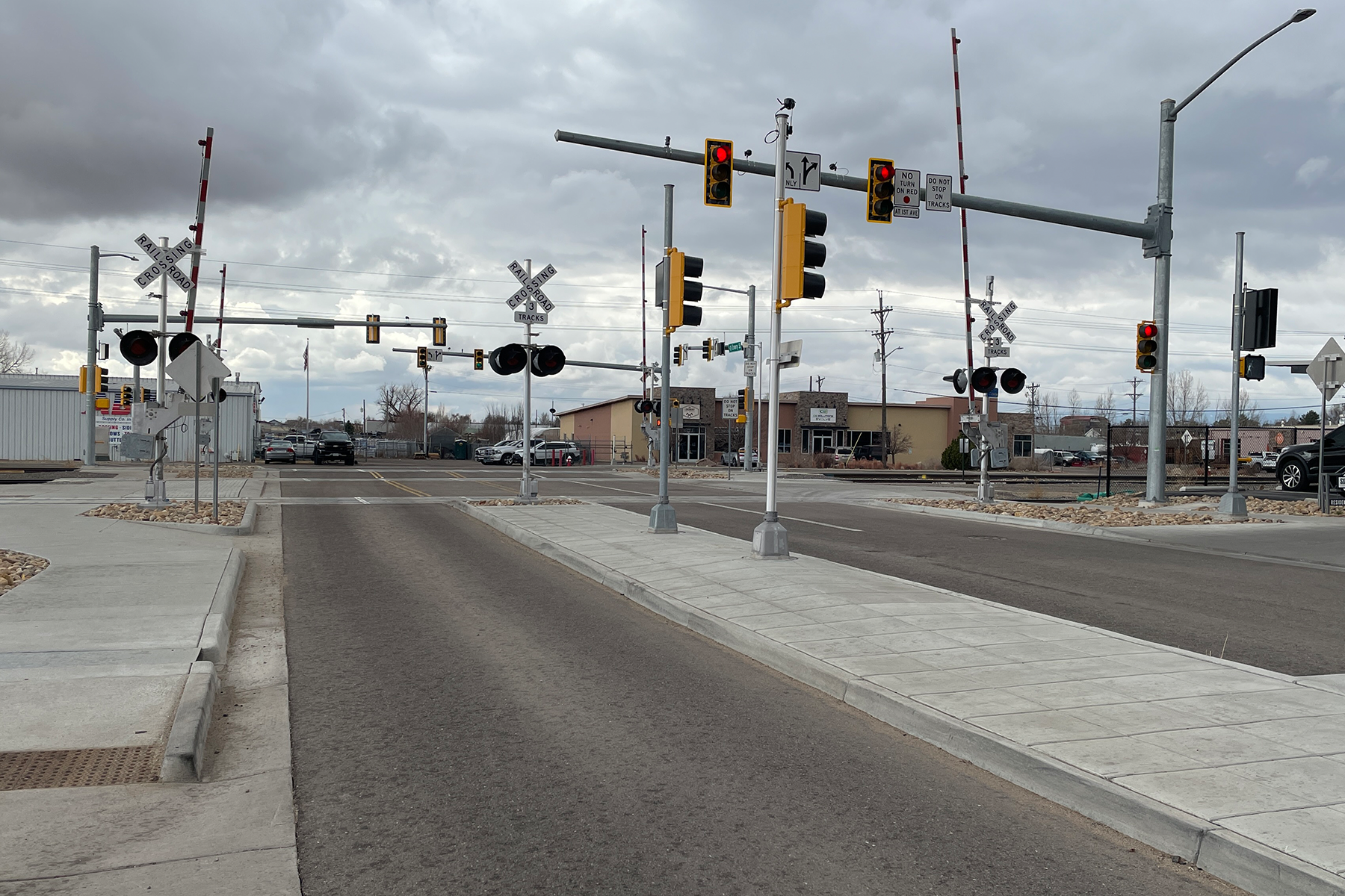 This project upgraded the intersection of 1st Avenue and Emery Street to provide improved access to a new Longmont Downtown development along Emery Street between 1st Avenue and 2nd Avenue. The project includes a crossing of two tracks owned by the Burlington Northern Santa Fe Railway (BNSF). The new traffic signal at 1st Avenue and Emery Street requires railroad pre-emption for signal operations while trains are passing through the Emery Street crossing.