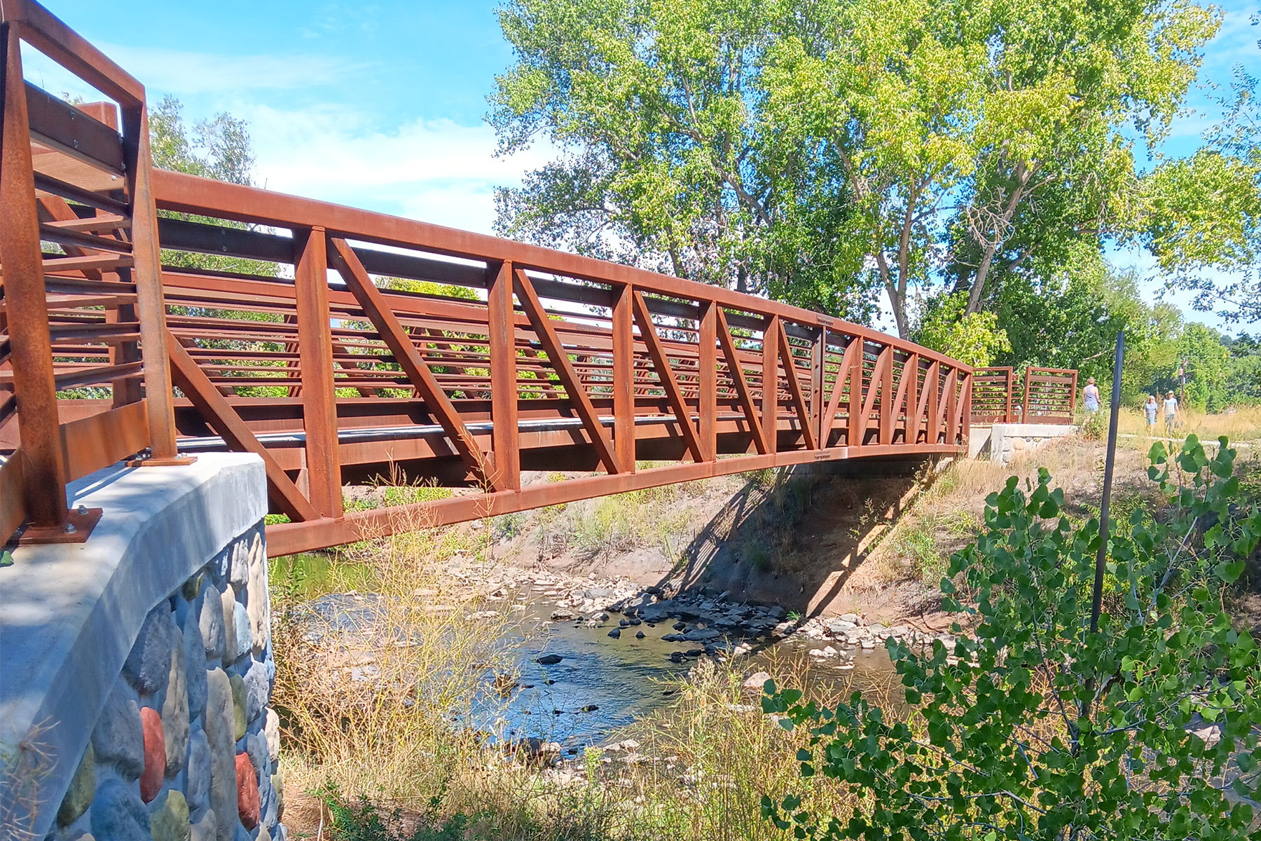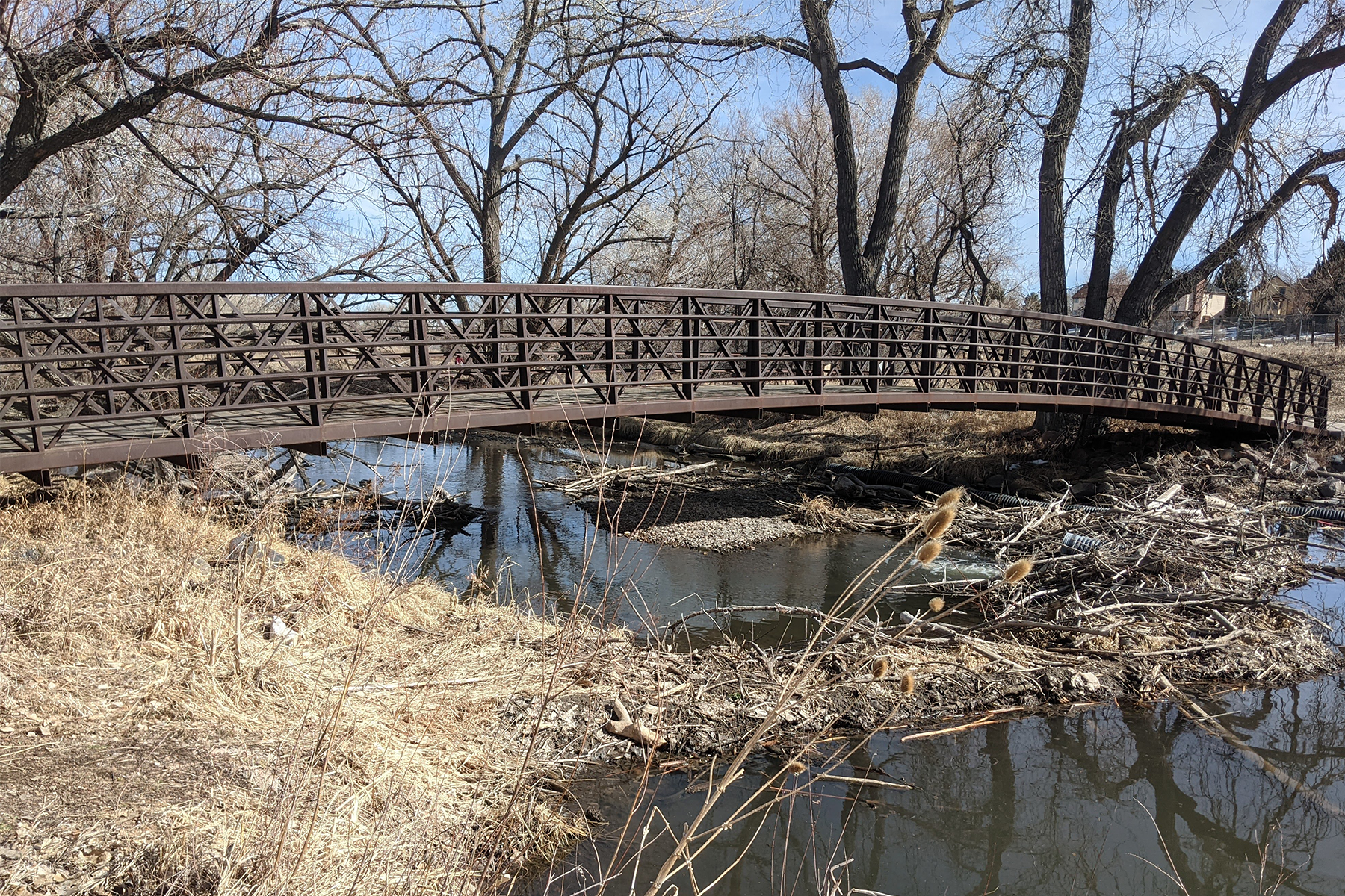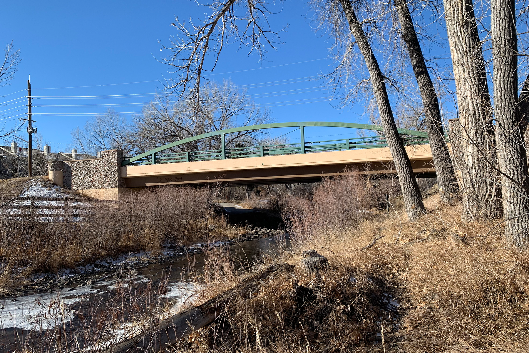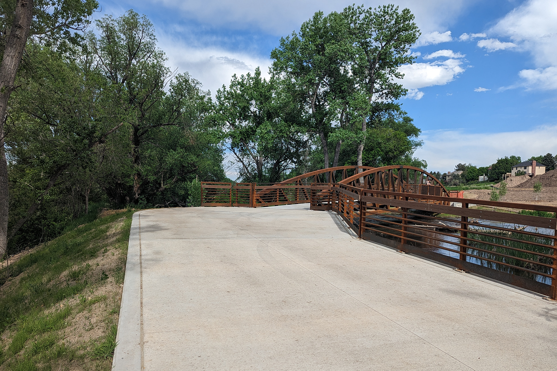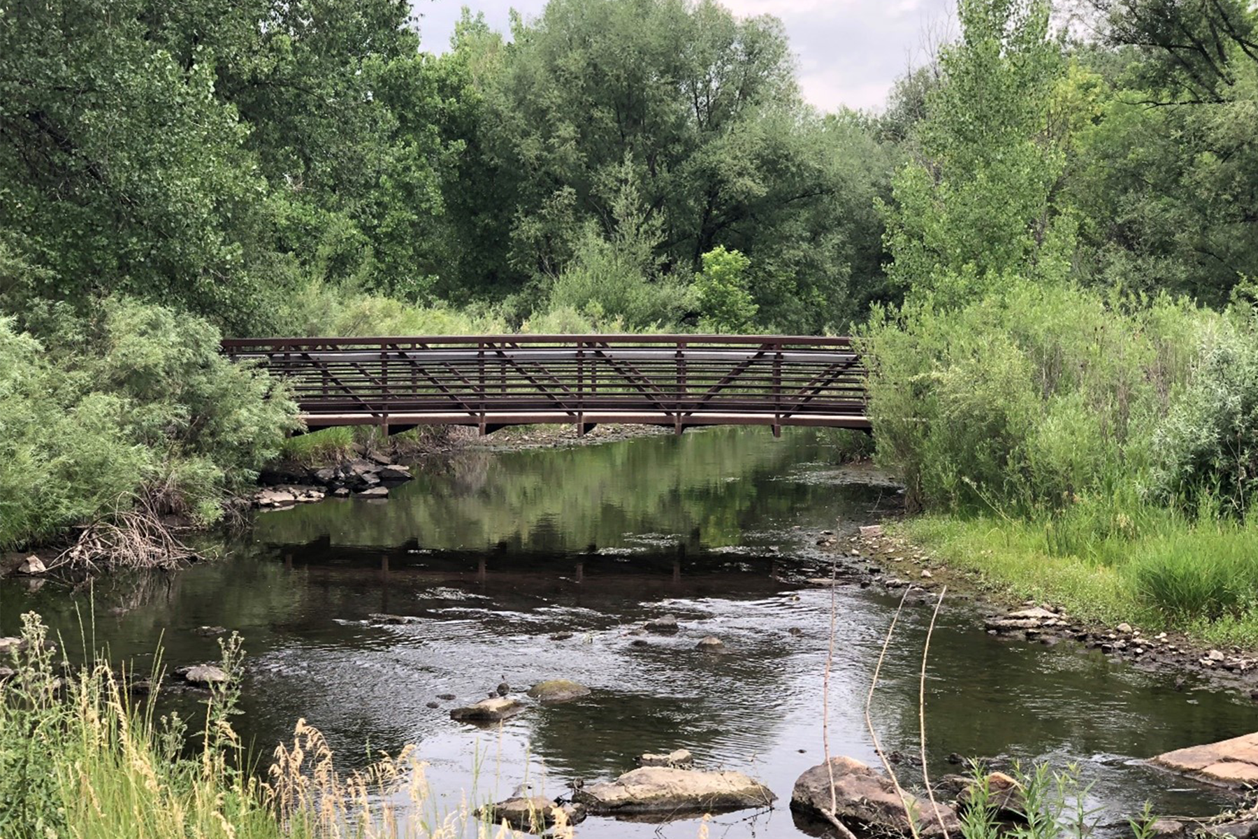 The Bear Creek Trail corridor spans from Fox Hollow Lane to Wadsworth Boulevard and encompasses several large drainageways. It is a significant resource to the Lakewood community, particularly the open space along this corridor. The project replaced two pedestrian bridges, improved the Estes Street trail underpass, and widened a 950-foot concrete path on the creek causeway, along with replacing 1.8 miles of the existing 8-foot concrete path with a 10-foot path and 2.65 miles of 6-foot-wide soft surface side trail through Lakewood’s open space. The Muller team provided data collection, field survey, wetland investigations, engineering design, trail design, and floodplain analysis for the project. Our team completed an SRH-2D model to confirm the spill locations and the flow depth present within the adjacent Stone House Park. The Bear Creek corridor is one of the City’s busiest trails, making these improvements even more crucial. It is a regional trail facility that connects the C-470 Trail with the South Platte River Trail.